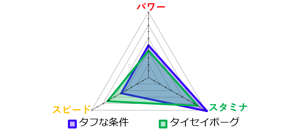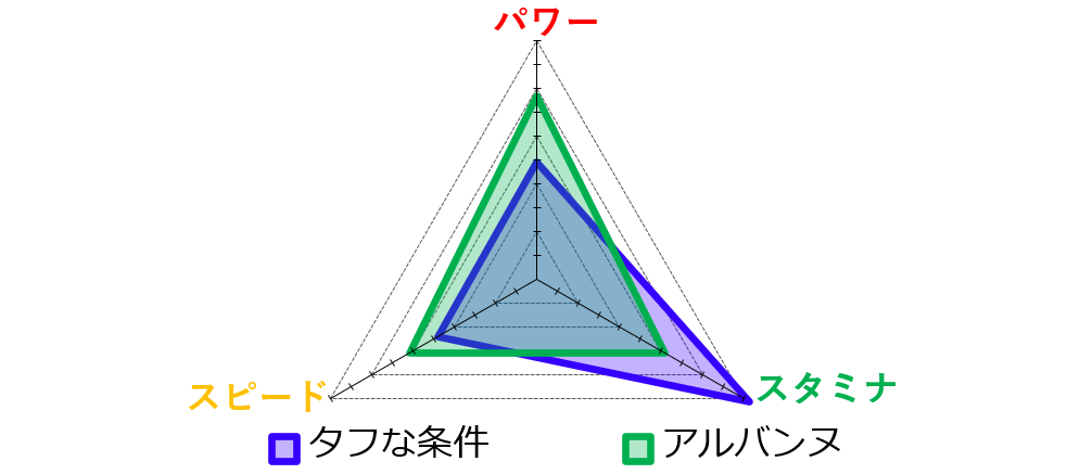 コース適性は、競走馬の能力をパワー✊、スピード⚡️、スタミナ🔋の3要素で分析しています。