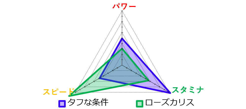 基本的にはタフな条件らしくスタミナが必要となり、高速決着とは真逆で胴にゆとりがあり、身軽で飛びの大きそうな馬体が好走傾向にありそうです。