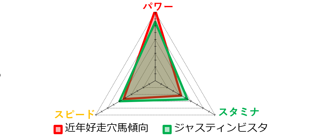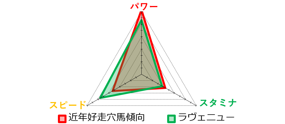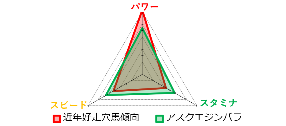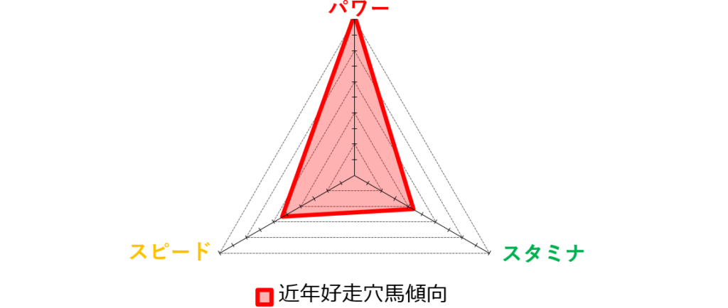 この点からも、スピード一辺倒ではなく、パワー寄りの資質を備えた馬が好走しやすい舞台と考えられます。
