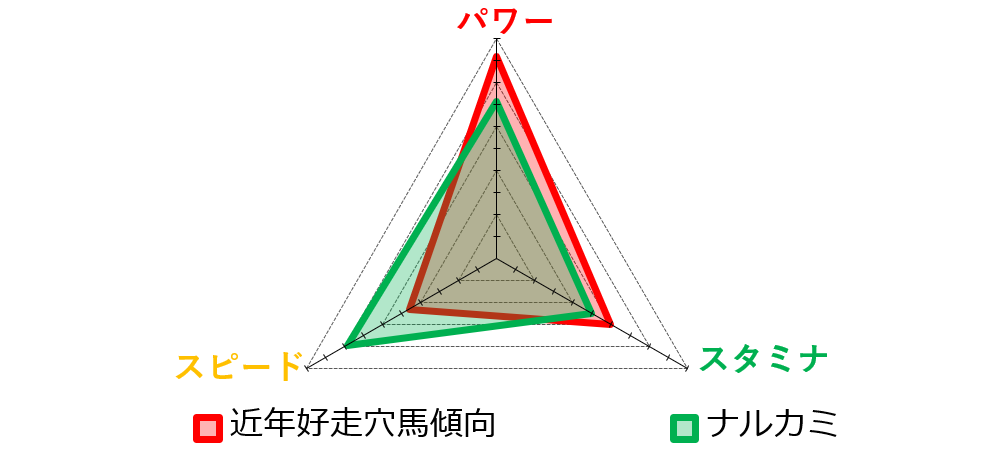 また、砂の深さが他の競馬場よりも深いため、3要素の中でもパワーが最も必要な要素になってきます。